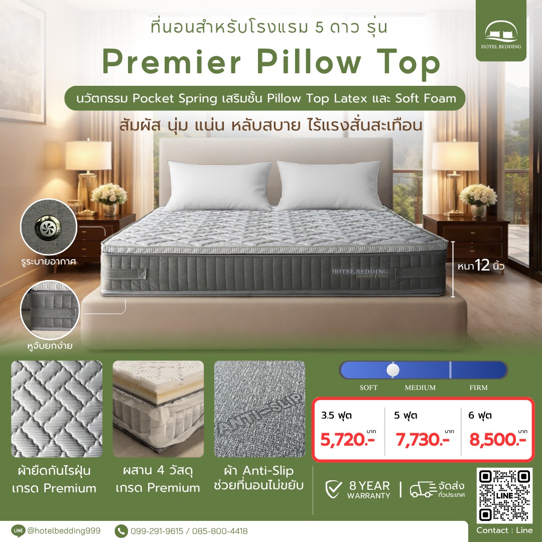ที่นอน pocket spring เสริมชั้น pillow top latex และ soft foam